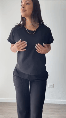 Remera + pantalón palazzo con calce relajado que afina la cintura, da soltura en caderas y cae recto para un look moderno y favorecedor todo el día. Perfecto para entrenar, salir o usar en el día a día sin resignar comodidad. 🙌